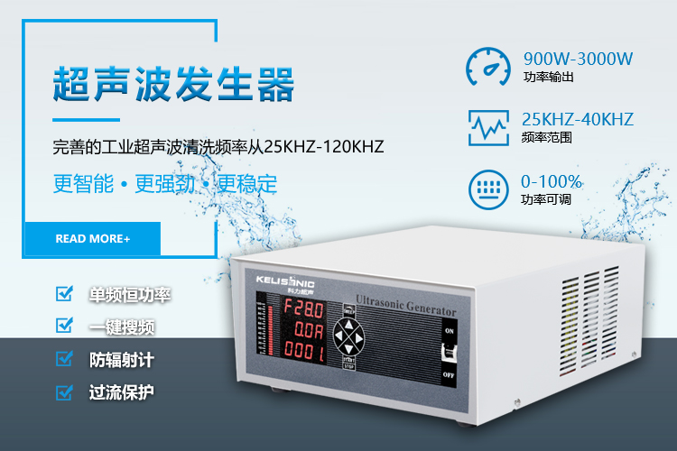 星空體育KG-X6型超聲波發生器從25KHZ至40KHZ的振動因子僅通過連接從而達到最佳頻率進行振蕩、精密輸出控制,從而實現全數字控制。恒功率一鍵追頻,讓超聲波清洗機操作更為簡單。